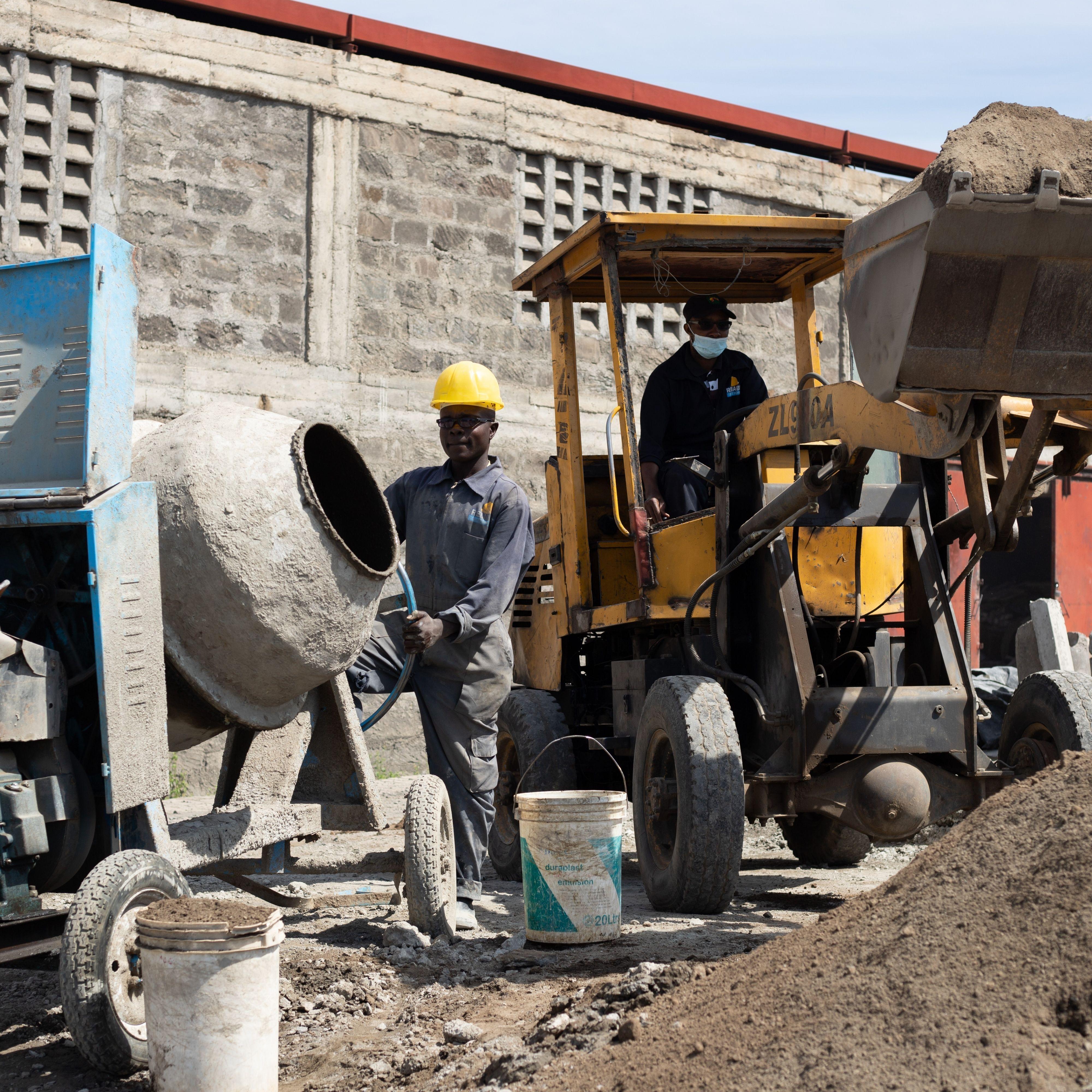 Concrete is a hardened building material created by combining a chemically inert mineral aggregate (usually sand, gravel, or crushed stone), a binder (natural or synthetic cement), chemical additives, and water. Although people commonly use the word "cement" as a synonym for concrete, the terms in fact denote different substances: cement, which encompasses a wide variety of fine-ground powders that harden when mixed with water, represents only one of several components in modern concrete. As concrete dries, it acquires a stone-like consistency that renders it ideal for constructing roads, bridges, water supply and sewage systems, factories, airports, railroads, waterways, mass transit systems, and other structures that comprise a substantial portion of the U.S. wealth.